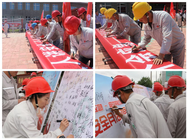 大家在簽字版上簽下自己的姓名,鄭重承諾,將牢固樹立安全意識,以身作則、嚴以律己,嚴格規(guī)范安全行為,防止各類事故發(fā)生,共同維護公司安全穩(wěn)定局面。